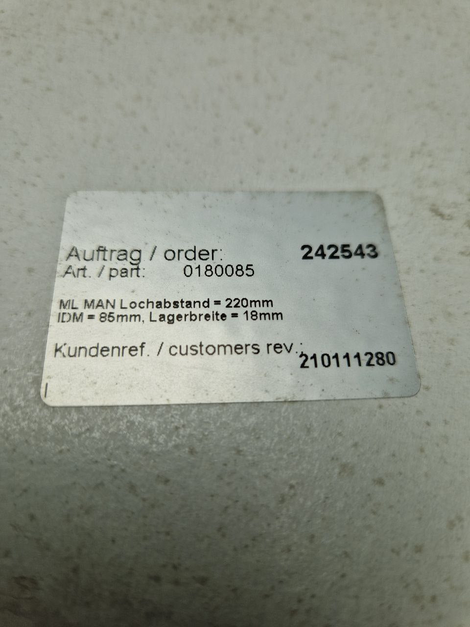 Cardan shaft hanger bearing, Hole spacing = 220mm, IDM = 85mm, bearing width = 18mm, ML MAN (Request price)