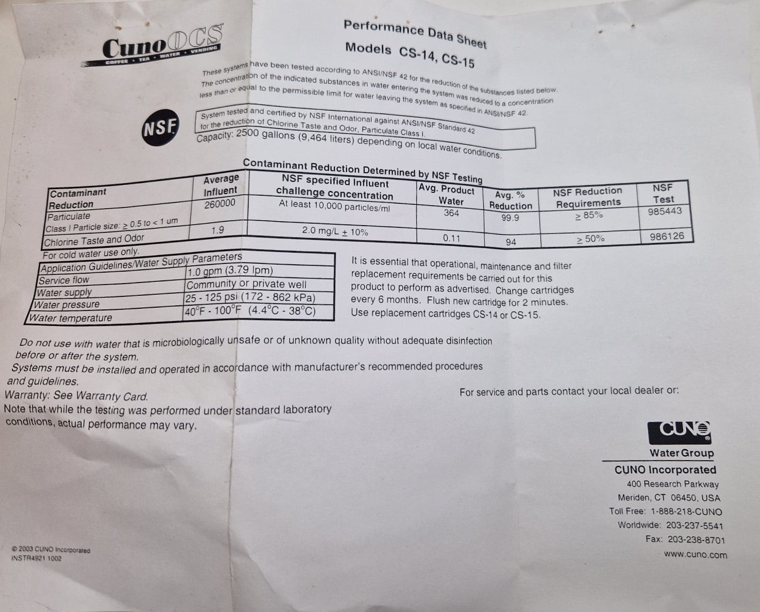CUNO CS-14 filter cartridge #5589605 (Request price)